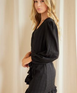Flash Sale! Black Tie Waist Wrap Dress ALLY – Stylish & Comfortable