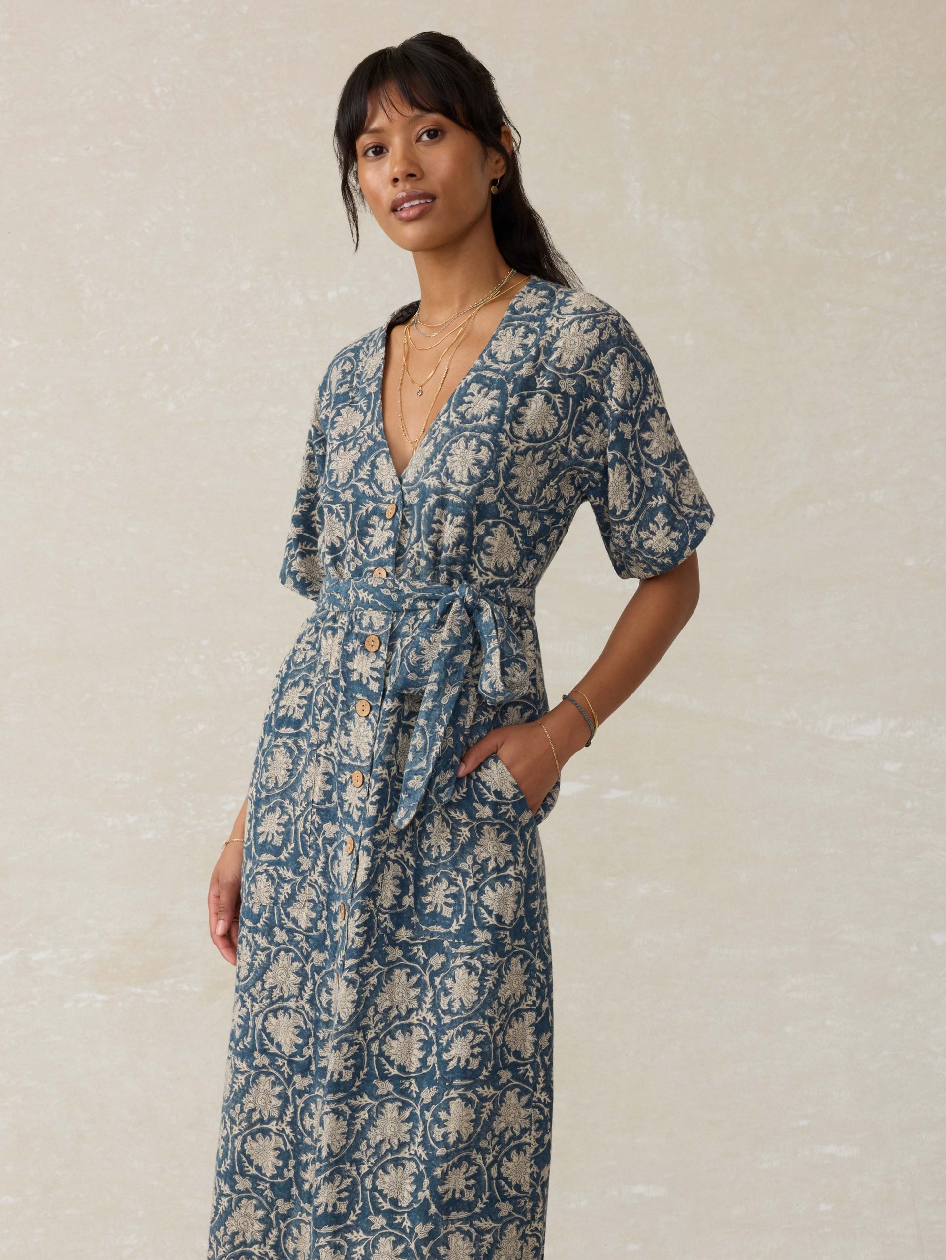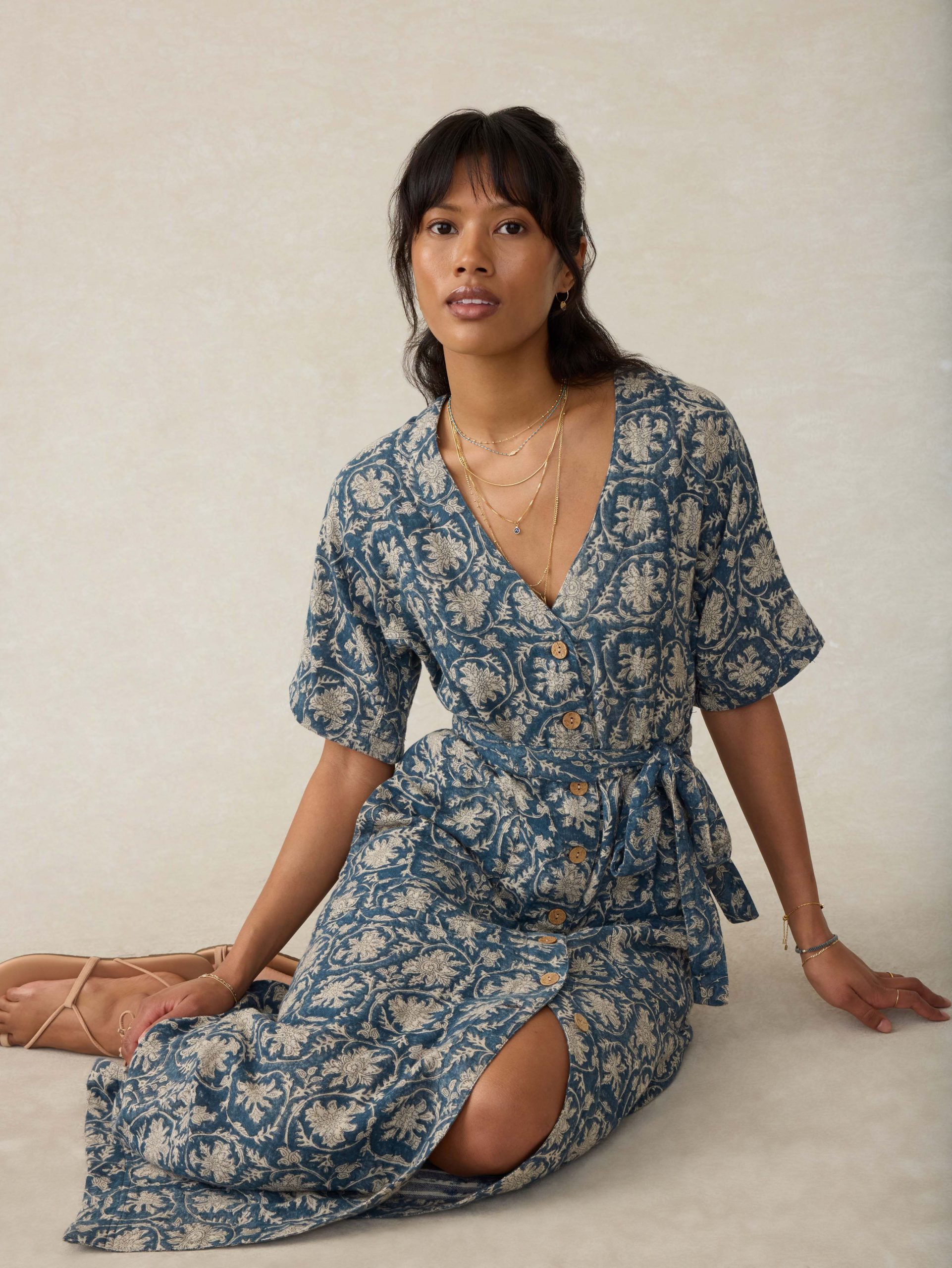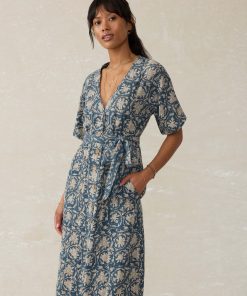 - Detail: Button through dress with coco buttons. Patch pockets at front. Removable self belt.